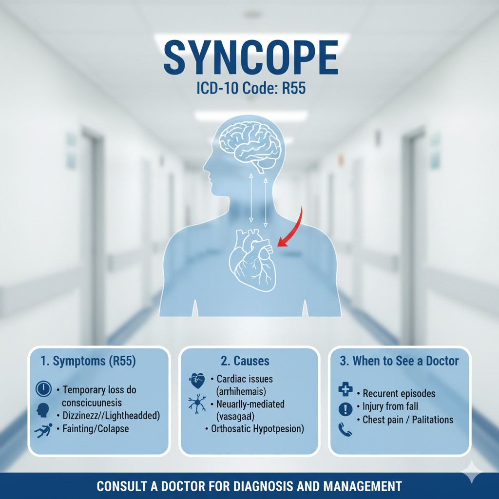 The code R55 represents ‘syncope and collapse.’ This is a catch-all designation that encompasses various scenarios of fainting without pinpointing a cause. It’s often used when the reasons remain unclear after initial assessments.